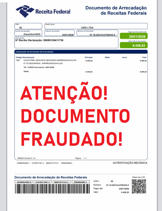 Conforme solicitado, segue o DARF-DAS referente 12/2025